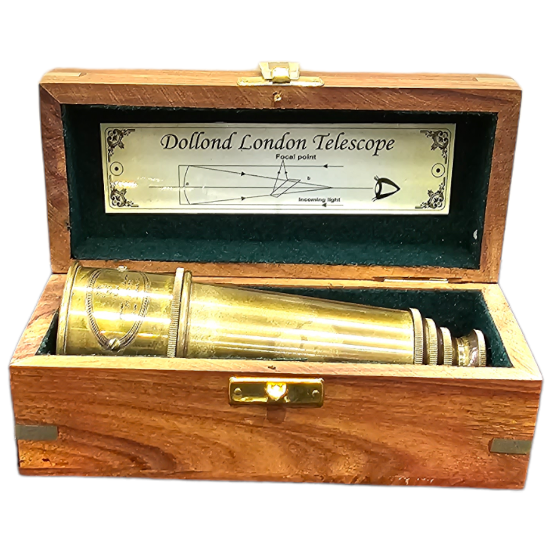 Dollond London 1920 Brass Telescope with Engravable Wooden Box – Vintage Nautical Gift