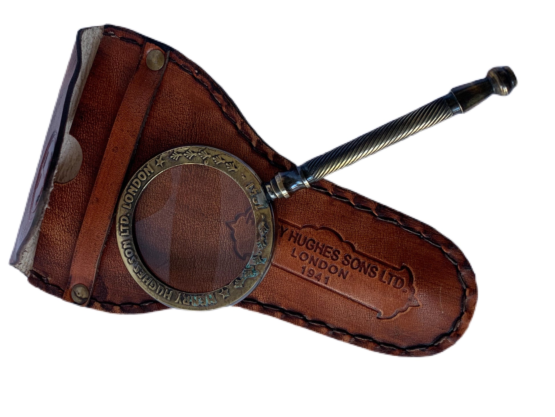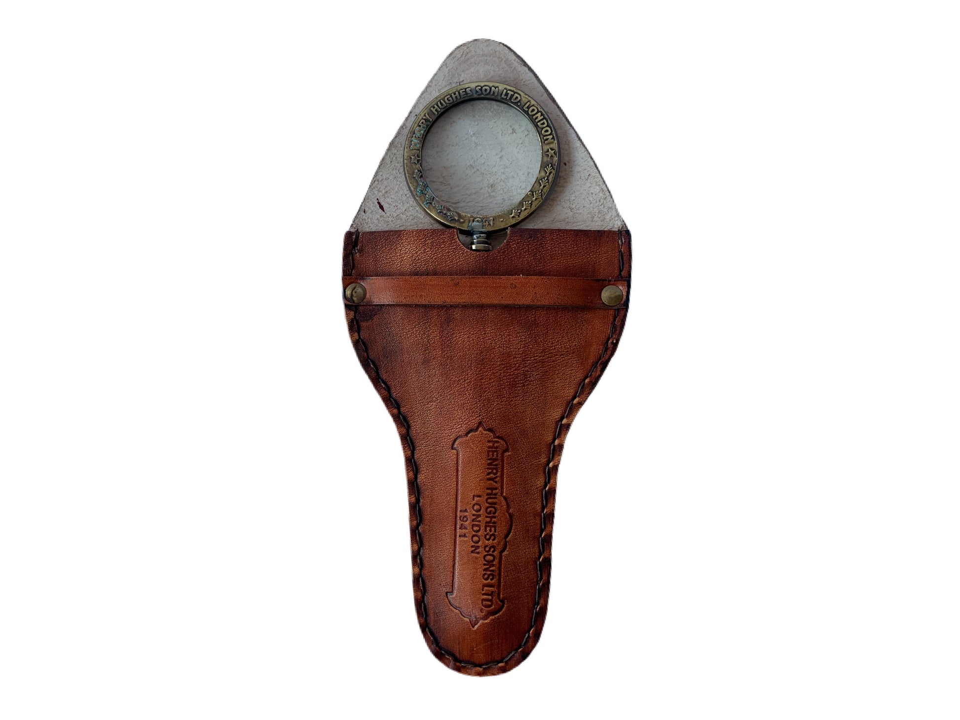 A small vintage style magnifying glass complete with a leather case.
