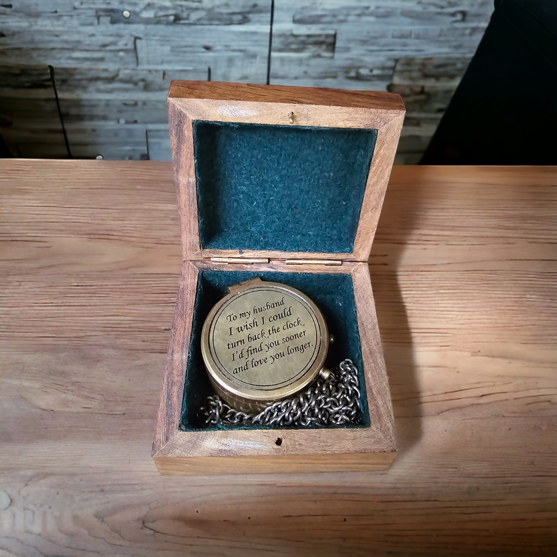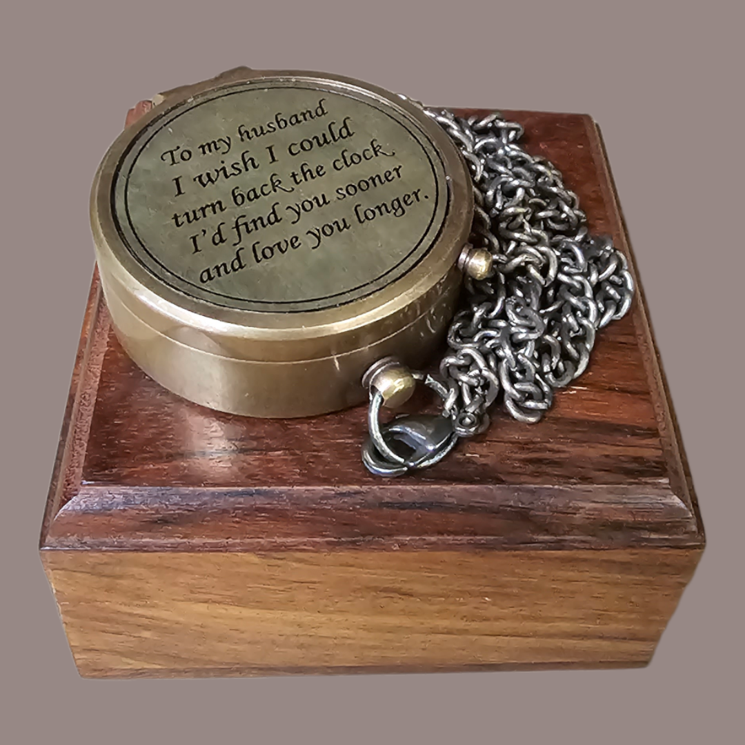 Share a timeless message of love and devotion with this handcrafted brass compass, engraved with a heartfelt quote for husband:
